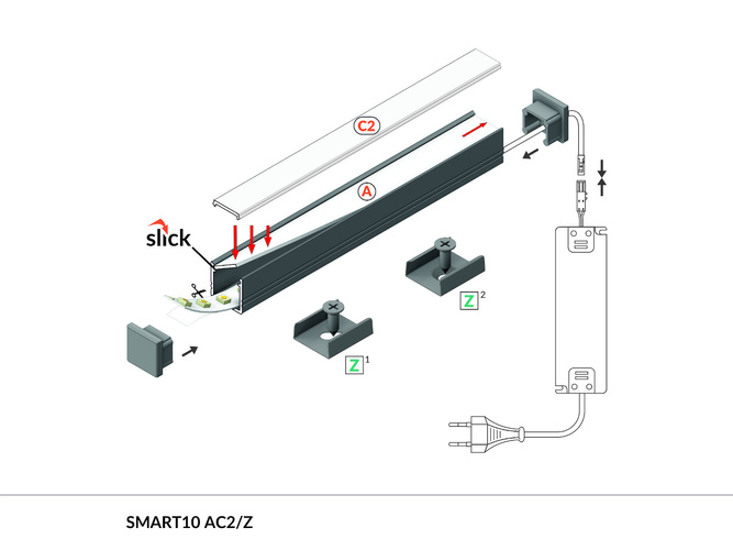 There are 2 types of covers available to the SMART10 LED profile: A slide cover and C2 click cover