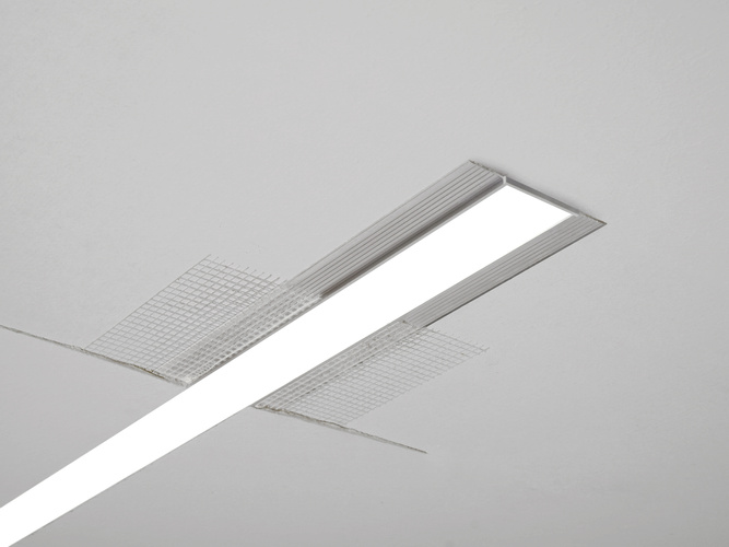VARIO30-05 is a recessed LED profile designed for drywall or wall installation and ideal for suspended ceilings. Its structure allows for the covering of mounting elements (wings) with filler, achieving a sleek and minimalist lighting effect that enhances the interior's character.
