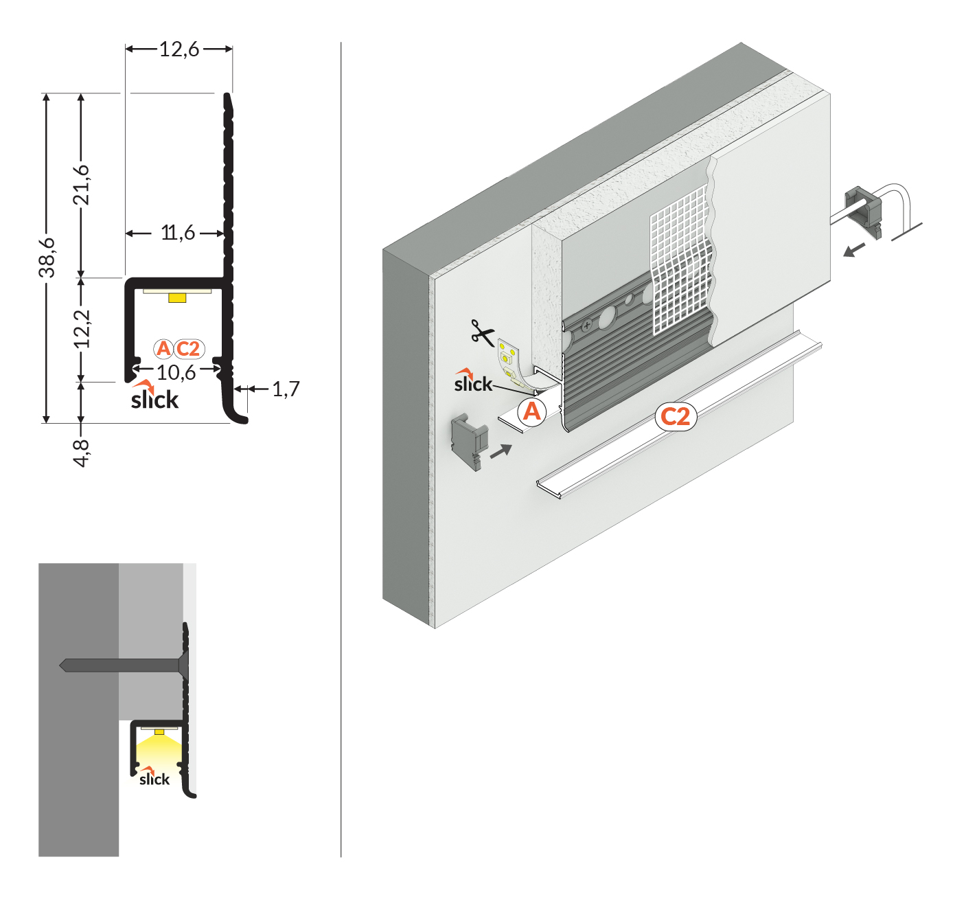 OMNI10 is an aluminium profile perfect for illuminating a building interior made from drywall. This profile model was created for decorative lighting coming from behind the wall structure made of plasterboard with a minimum thickness of 12.5 mm. OMNI10 is usually led around the building interior and the possibility of smoothing its edges makes this profile invisible. The suitable selection of LED light sources makes it a discreet mood creator for your living room, corridor, and bathroom.