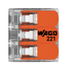 The WAGO 221-413 connector (3x0.2–4 mm²) is a universal installation connector designed for fast and secure connection of solid, stranded, and fine-stranded wires.