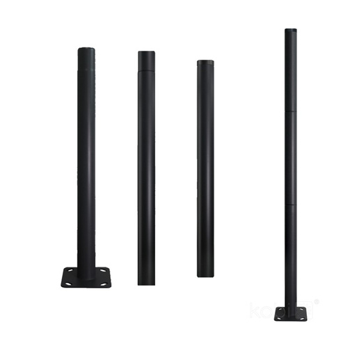 Modern steel poles with a modular design are an ideal solution for mounting solar lights, cameras, and other outdoor devices. Painted black, they provide a durable and visually appealing element for outdoor lighting infrastructure.