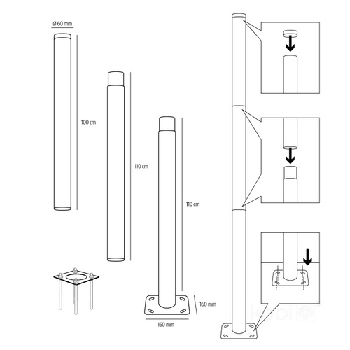 Ideal for public spaces, parking lots, bike paths, parks, or private properties. Thanks to the modular design, the pole height can be quickly adjusted to meet the requirements of any specific project.