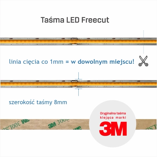 ZoomLED COB LED strip is a waterproof LED tape designed for both indoor and outdoor use. It is most commonly chosen by our customers for bathroom lighting. The COB strip features a high CRI (90), a key parameter that ensures accurate color rendering. A 4000K color temperature provides a natural white light tone.