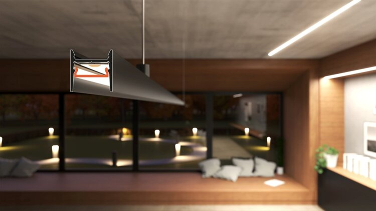 The COZY12 LED profile is a new proposition from Topmet, ideal for people who value elegant and functional lighting. Small and neat, it works well in both home and commercial arrangements. COZY12 combines minimalist design with modern functionality. It can be surface mounted or as a pendant luminaire, making it a versatile solution. It reduces glare, and its aesthetic proportions add elegance to exposed spaces. The profile is available with matching end caps in the following colours: white, black, grey and silver, and you can buy slings for the pendant version.
