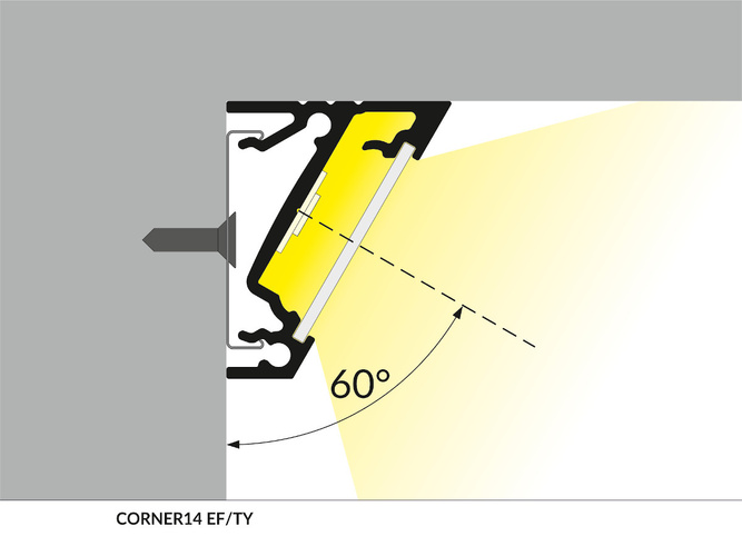 Depending on the choice of CORNER14 profile fastening method, the LED strip can give light at an angle of 30deg or 60deg.