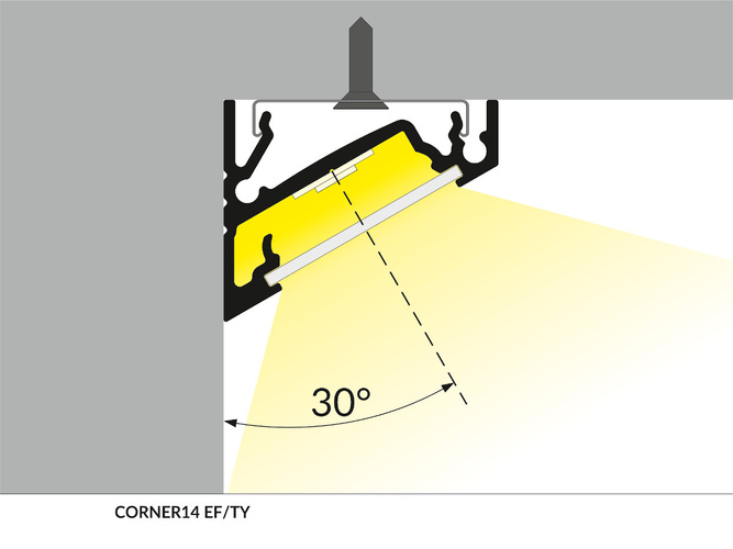 Depending on the choice of CORNER14 profile fastening method, the LED strip can give light at an angle of 30deg or 60deg.